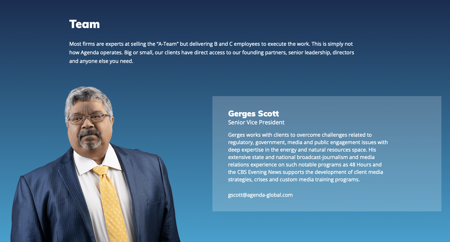 Gerges Scott (the familiar face) is a professional lobbyist in New Mexico and is Vice President of Agenda Global, a lobbying firm that represents Chevron and ConocoPhillips, as well as Holtec International, the company trying to dump nuclear waste in the state. Scott and Agenda won the $100,000 contract to diversify “away from the state’s current dependence on oil and gas” through a competitive bidding process responding to that RFP.